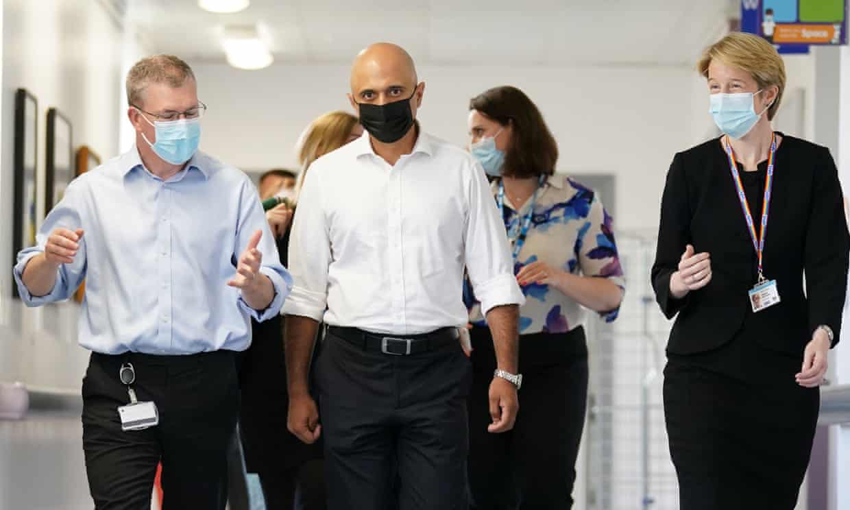 Health secretary Sajid Javid (centre) with Amanda Pritchard, chief executive of NHS England, during a visit to Milton Keynes University hospital earlier this year. Photograph: Jacob King/PA
